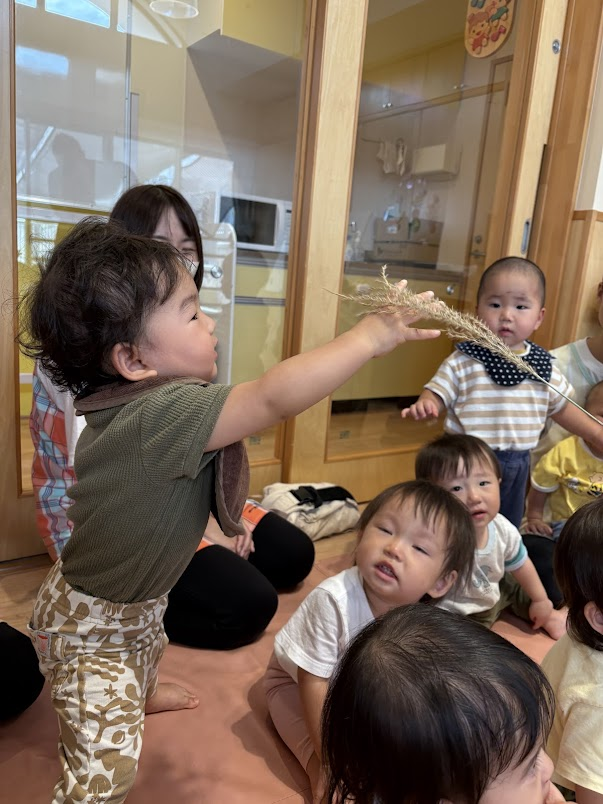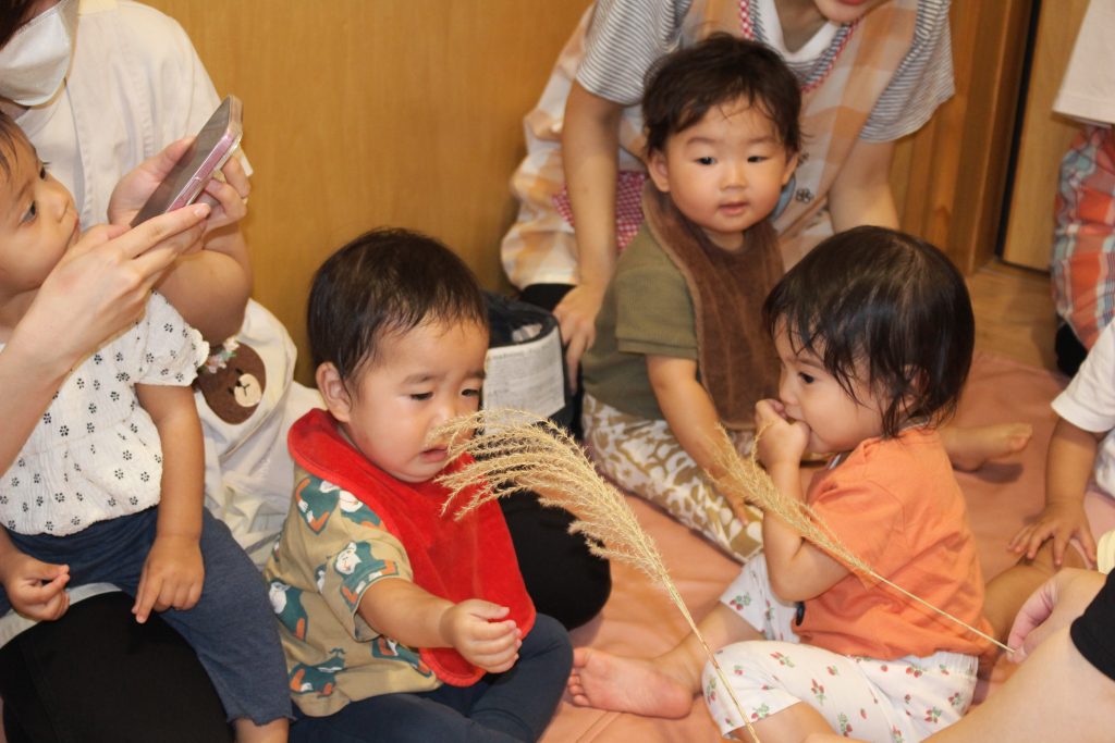 お供えするぶどうや柿、お月見団子やススキ等も近くで見て触ることが出来ましたよ。