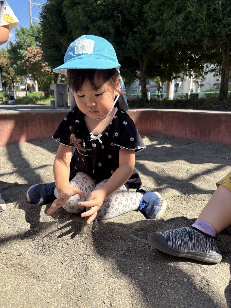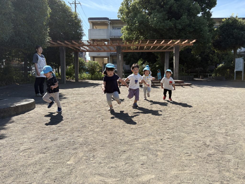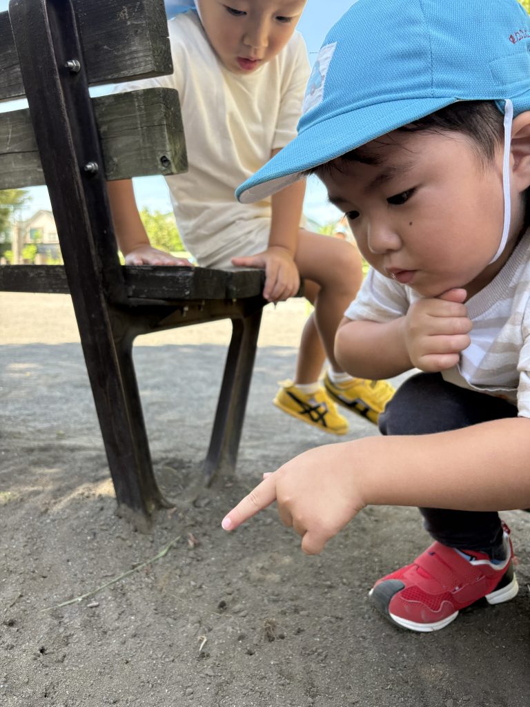 朝の会の時に、「今日はお散歩に行くよ」とお話すると、「やったぁ!」と大喜びの子どもたち!公園の名前を挙げながら、どこに行くかな??と予想する姿がとてもかわいらしいです🥰