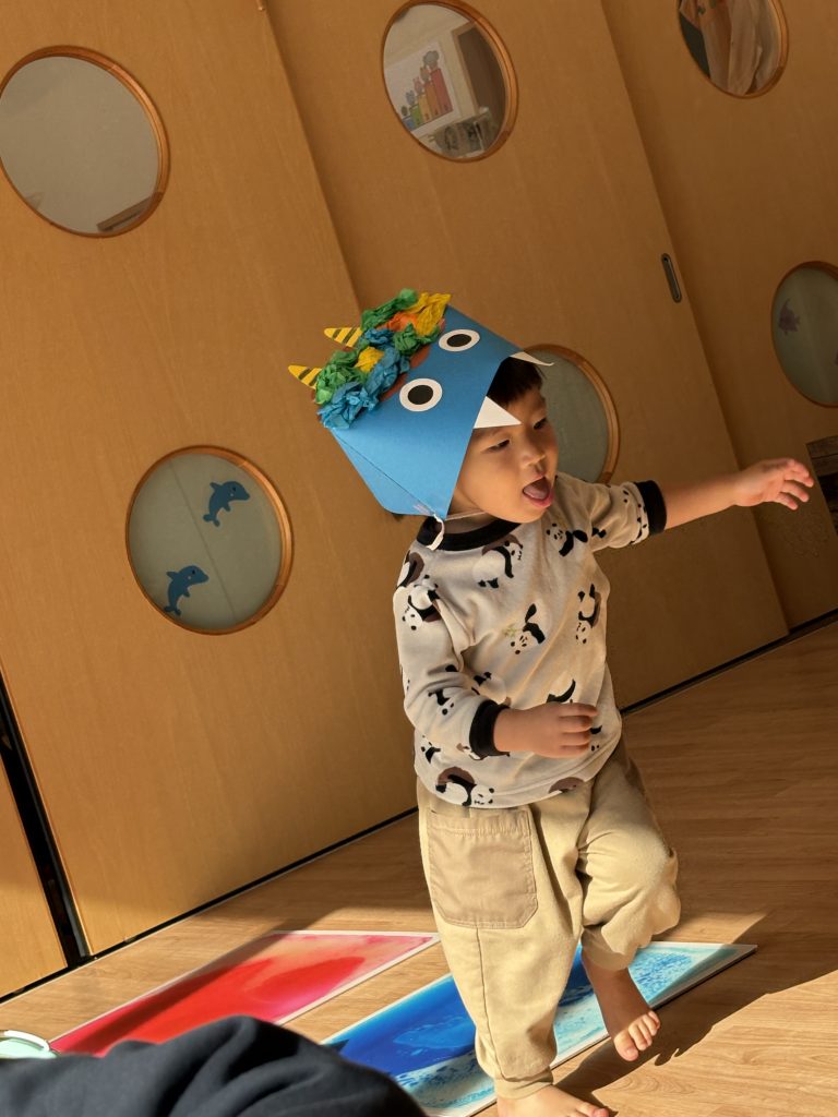 完成すると作ったお面をかぶって見せてくれました💓とってもかわいらしいです🥰